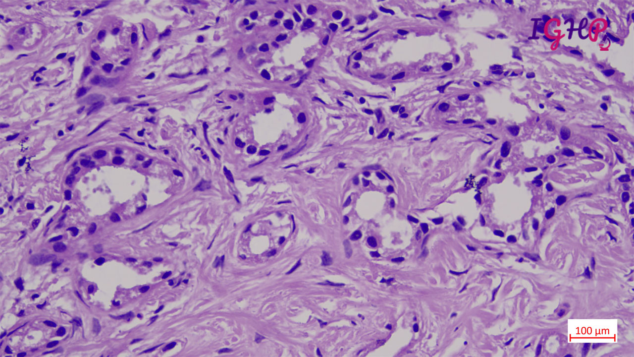 Frozen section examined showed a lesion with proliferated ductules