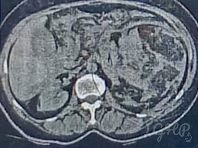 64-year-old male history of road traffic accident presented to emergency department with severe pain abdomen. Plain CT showed ruptured mass in upper pole of kidney. From the images below identify the likely disease.