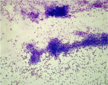 Large monomorphic cells with prominent nucleioli Diff stain