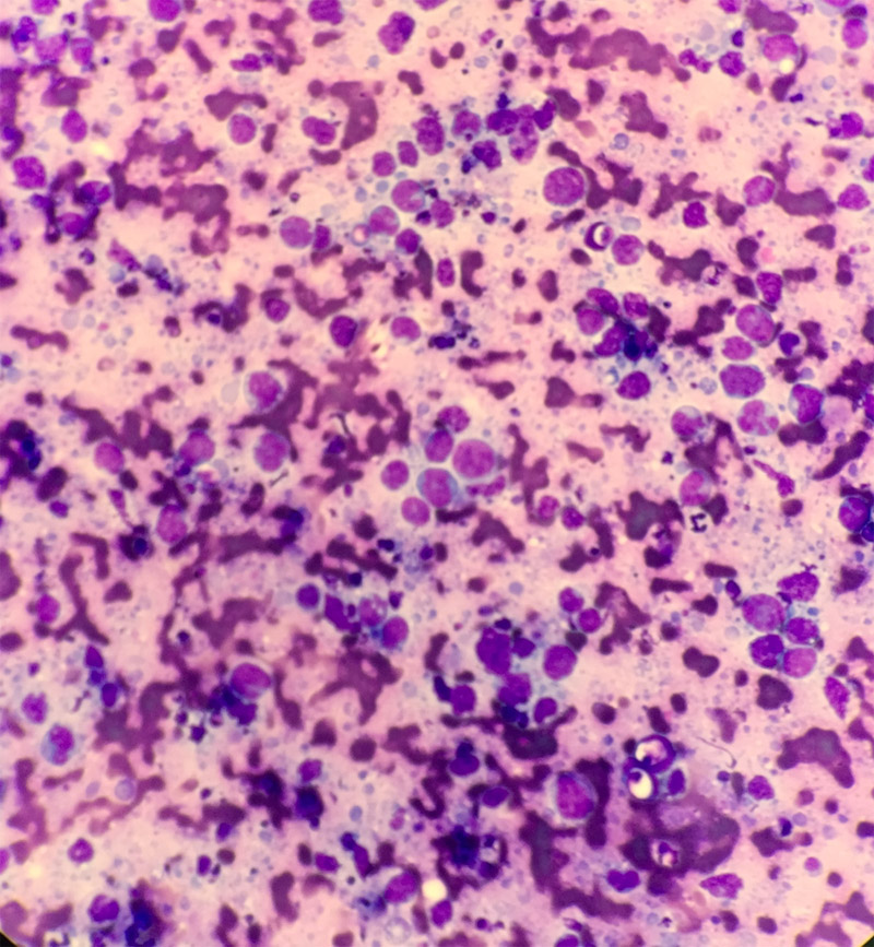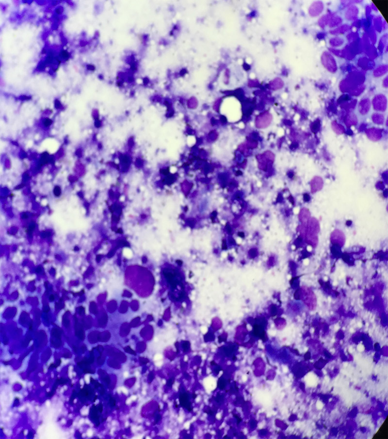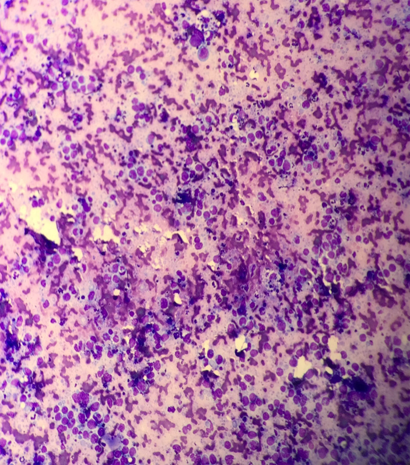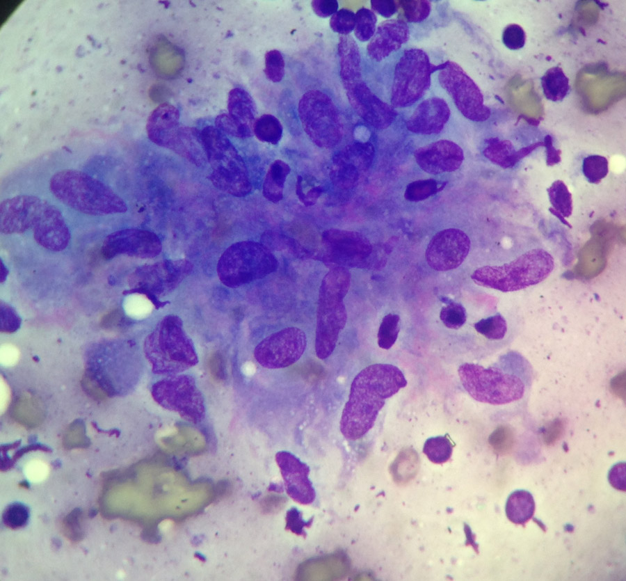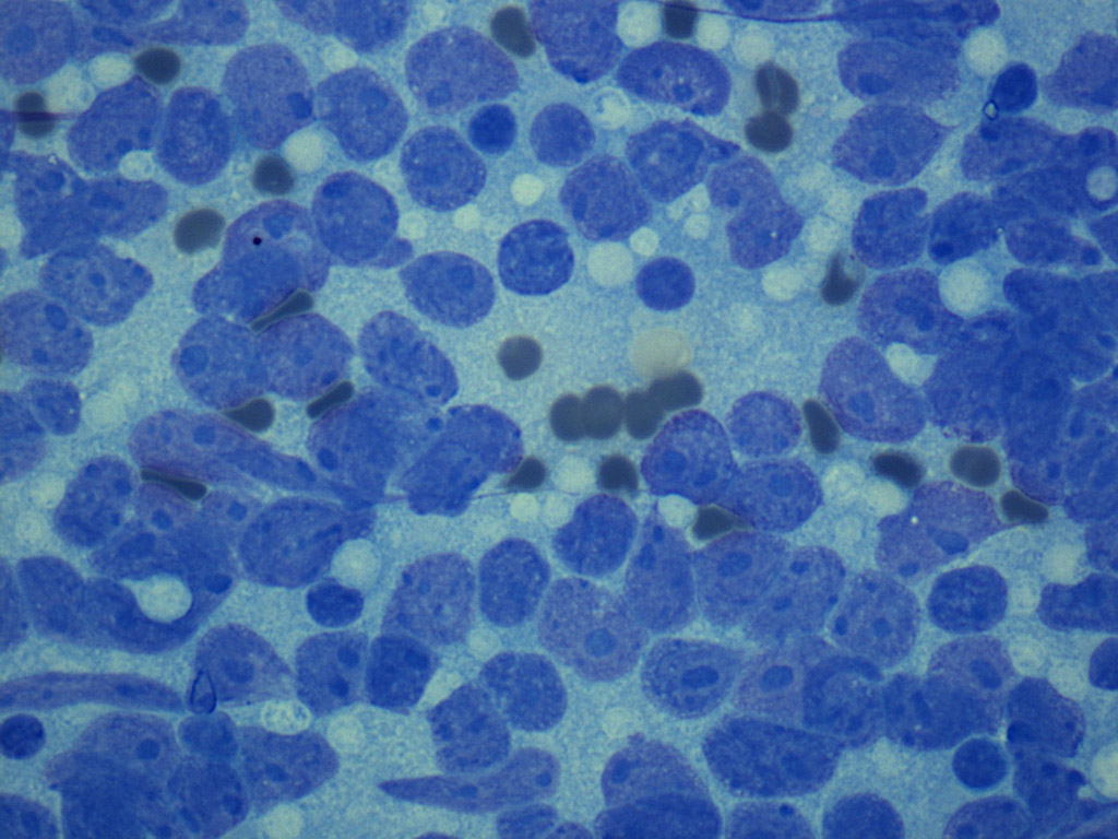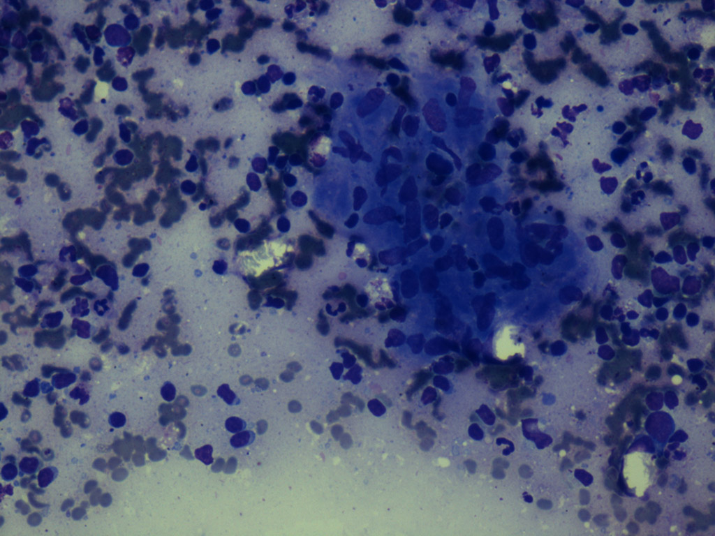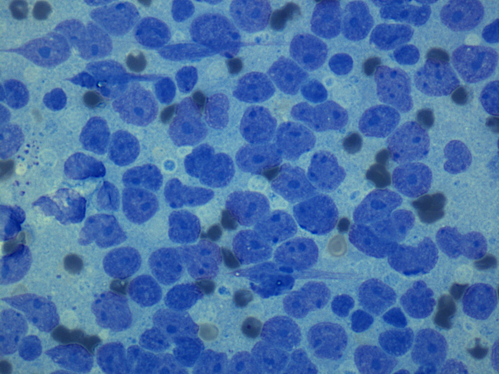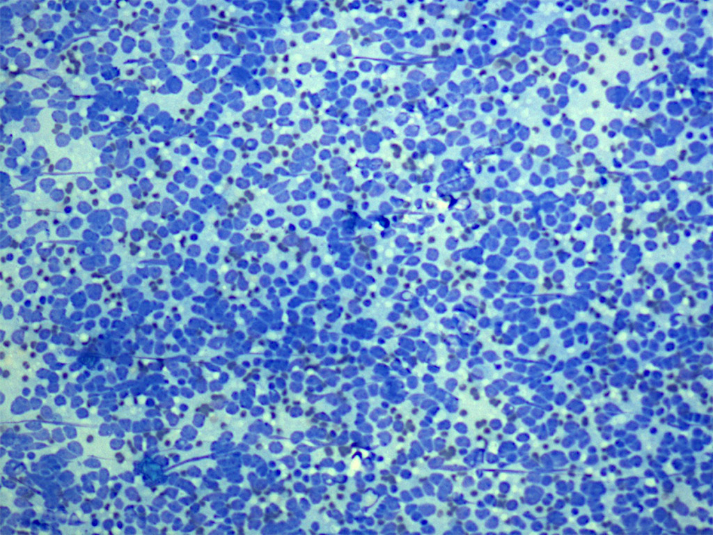 Monomorphic cells lymph node FNA MGG stain